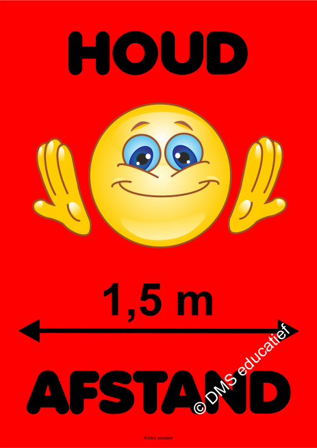 Leerlingen in het voortgezetonderwijs hoeven geen 1,5 meter afstand te houden. Leerlingen en personeel op middelbare scholen houden 1,5 meter afstand tot elkaar. Uitzondering voor onderwijspersoneel is wanneer nabij contact voor de werkzaamheden noodzakelijk is. 1,5 meter afstand houden in de praktijklessen in het beroepsgerichte onderwijs en het praktijkonderwijs is niet altijd mogelijk. Daar geldt dat leerlingen en onderwijspersoneel zoveel als mogelijk 1,5 meter afstand houden. Volwassenen houden altijd anderhalve meter afstand tot elkaar. Iedereen op school krijgt het dringende advies een mondkapje te dragen buiten de les. Voor deze doelgroep zijn de posters zeer geschikt. De corona posters geven duidelijk de anderhalve meter aan.